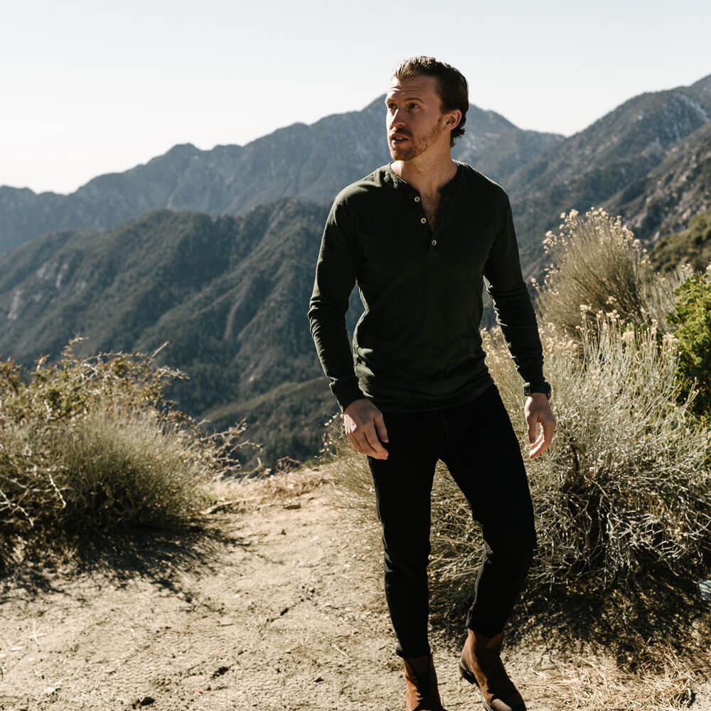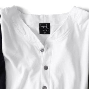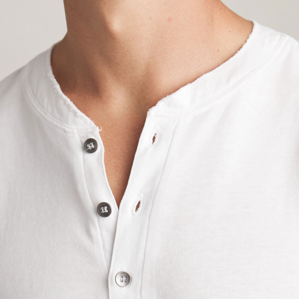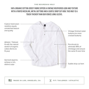 100% organic cotton jersey fabric offers a vintage weathered look and texture with a frayed neckline, metal buttons and a subtle drop cut hem. This HNLY is a touch thicker than our Venice long-sleeve.